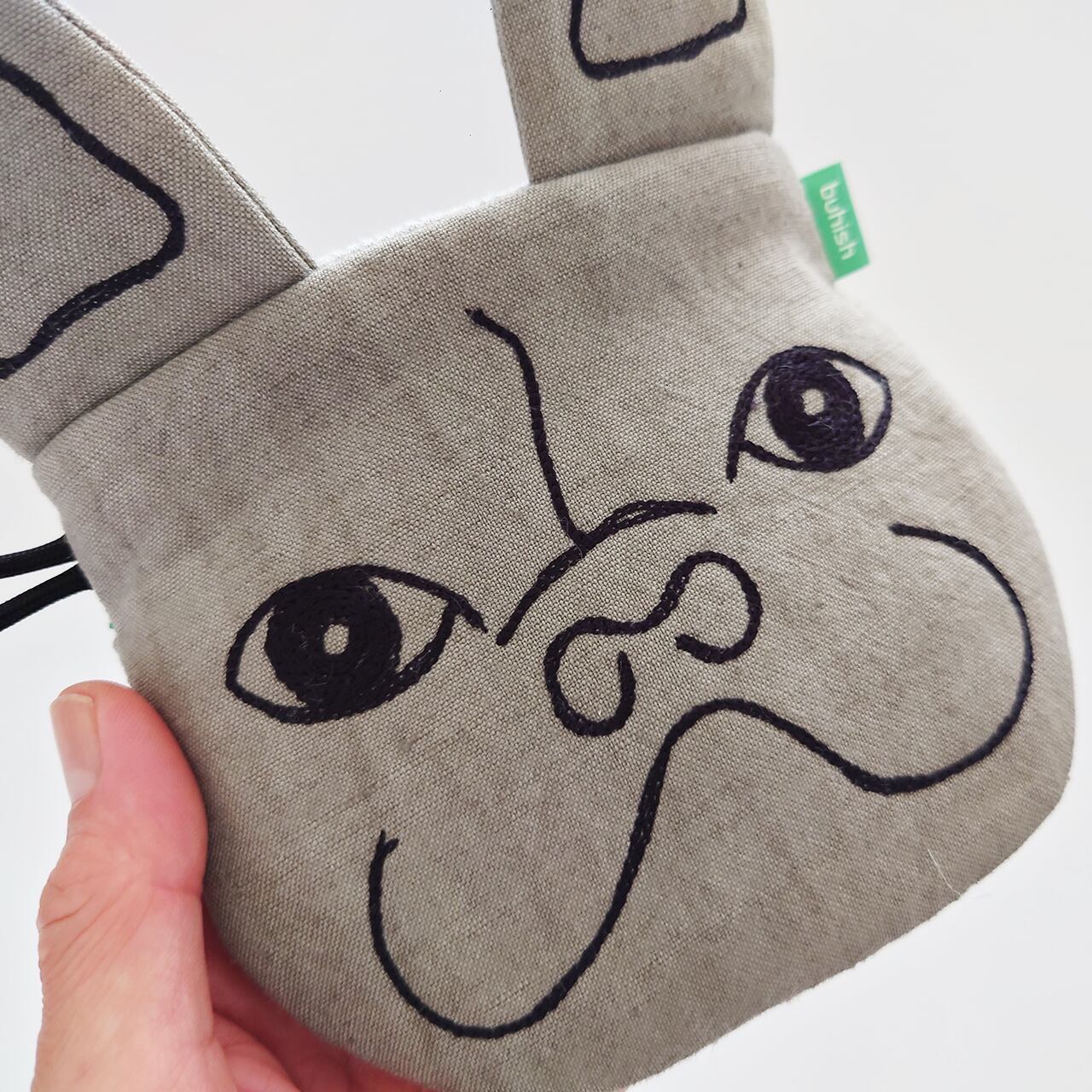 フレブルさんの顔と米っ歯は、特殊なハンドルミシンを使い、一つひとつ丁寧に刺繍しています。