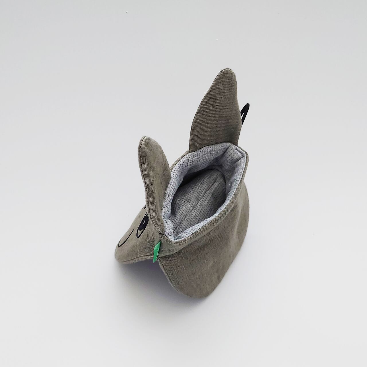 リネン地にはふっくらとしたキルト芯を合わせ、鍋をつかむ“お口”部分にはフェルトを2枚重ねているため、熱が伝わりにくくなっています。