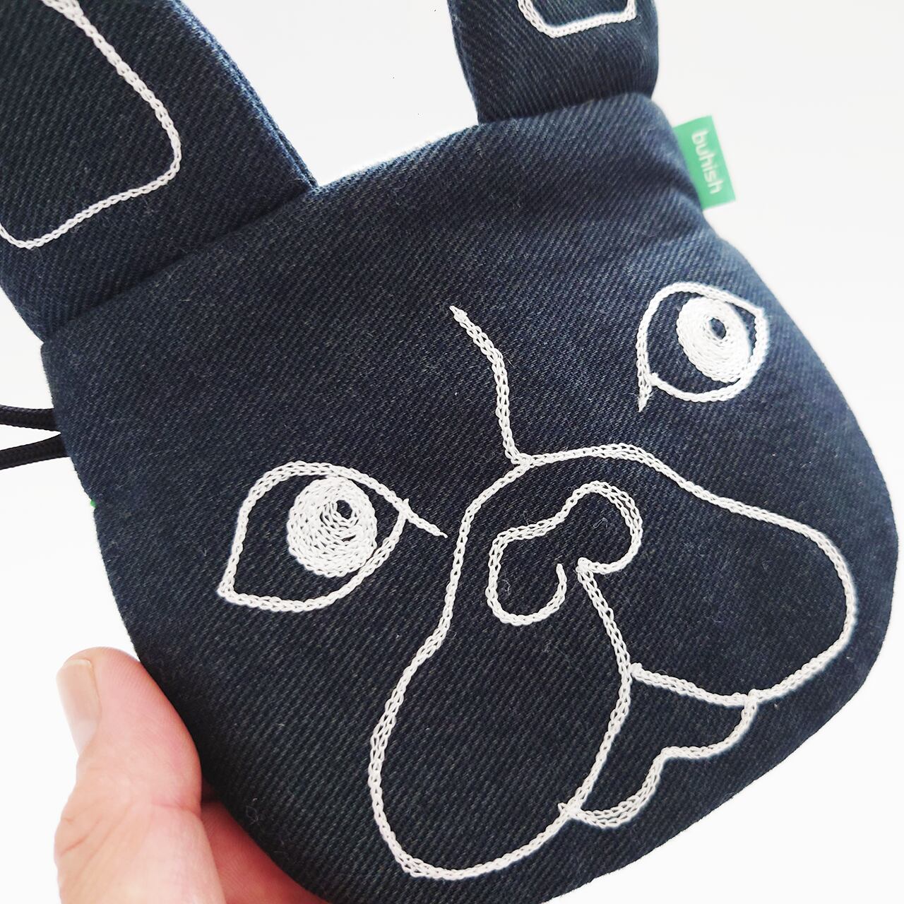 フレブルさんの顔と米っ歯は、特殊なハンドルミシンを使い、一つひとつ丁寧に刺繍しています。