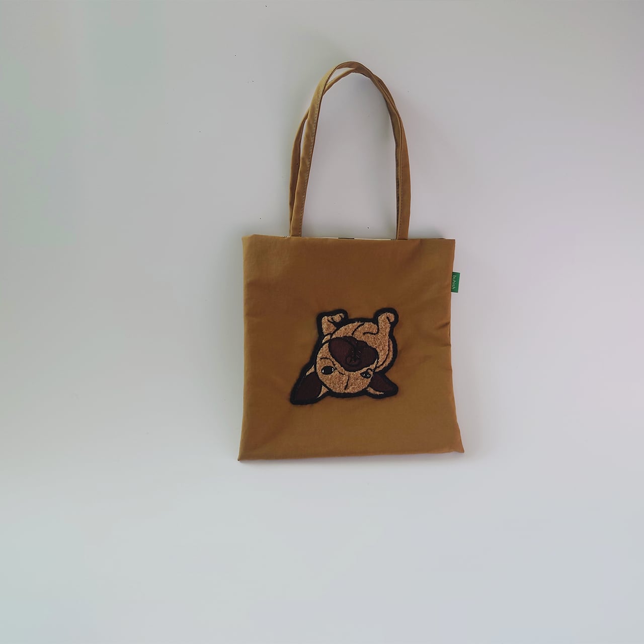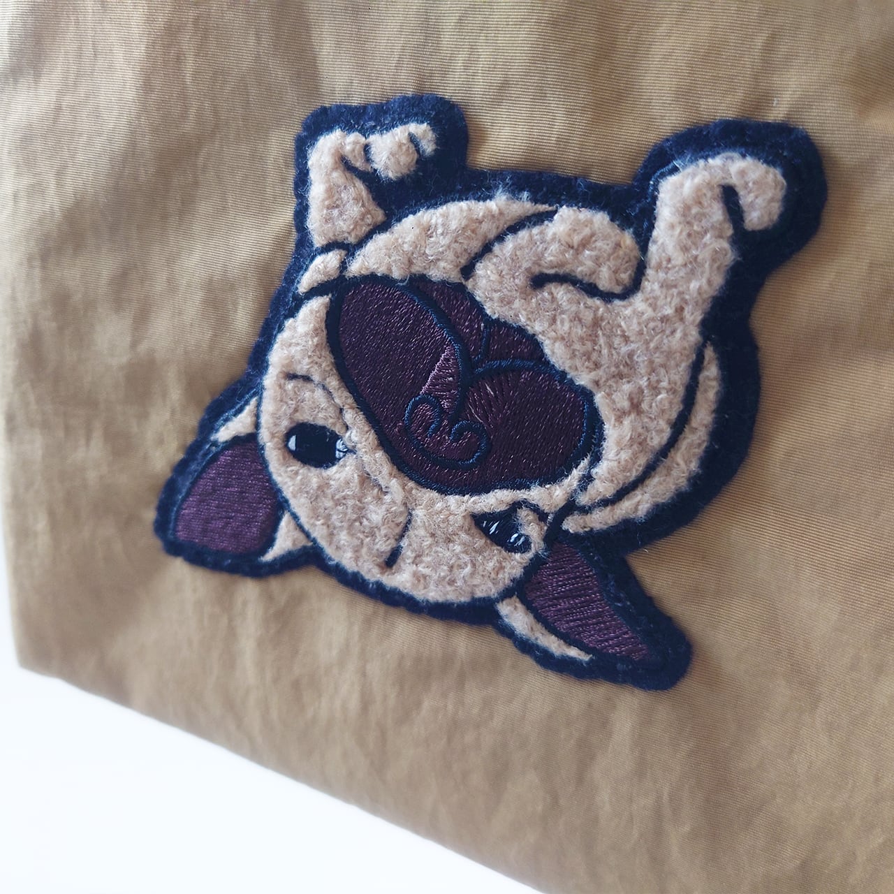 刺しゅうのワッペンをつけてバッグに仕立てました。