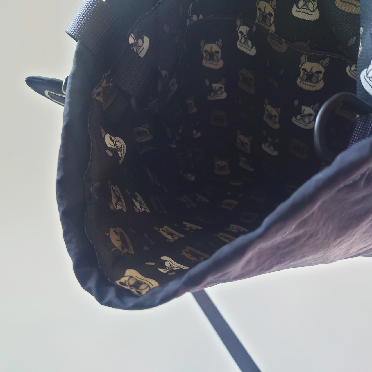 フレンチブルドッグのお顔がモチーフの、斜め掛けできるショルダーバッグです。