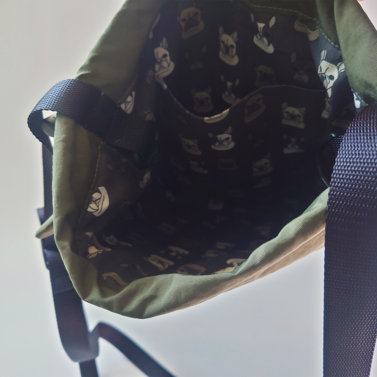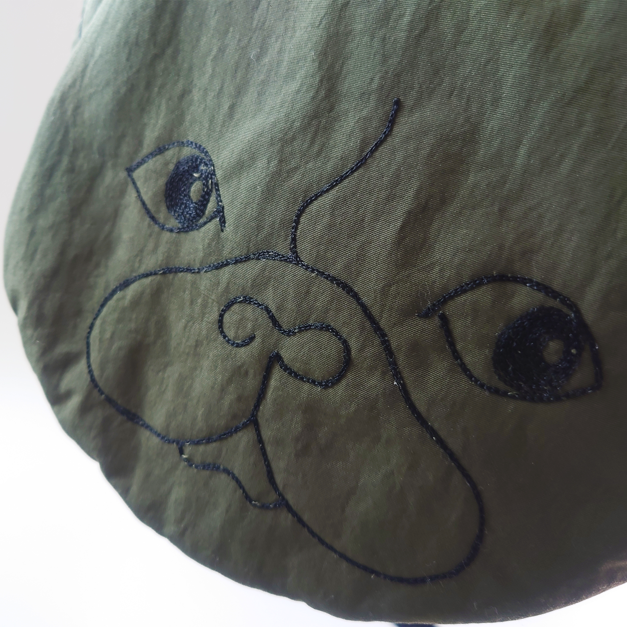 ドロスト顔バッグ(オリーブ・外ポケットあり)