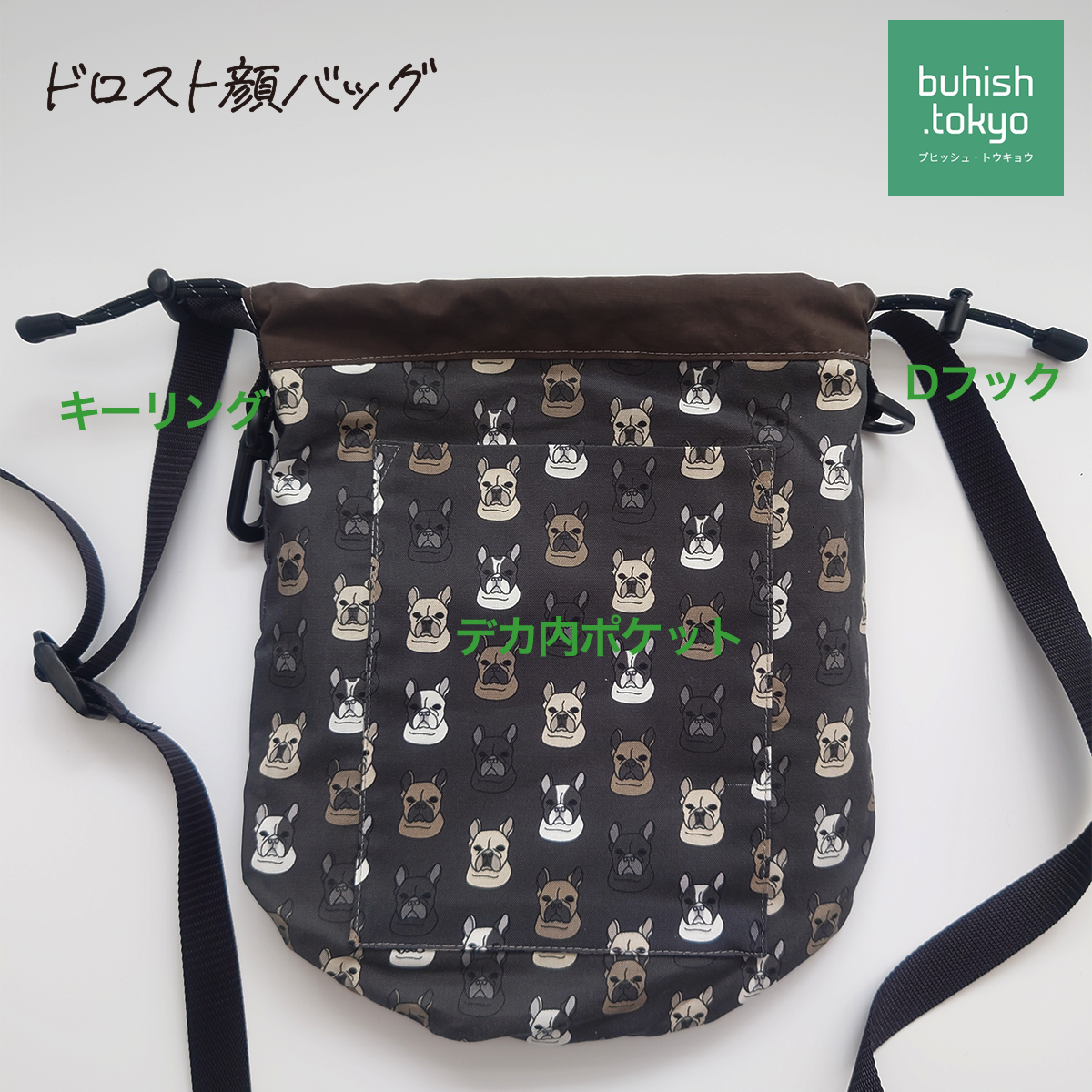 フレンチブルドッグのお顔がモチーフの、斜め掛けできるショルダーバッグです。