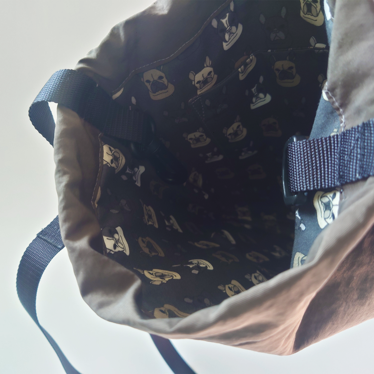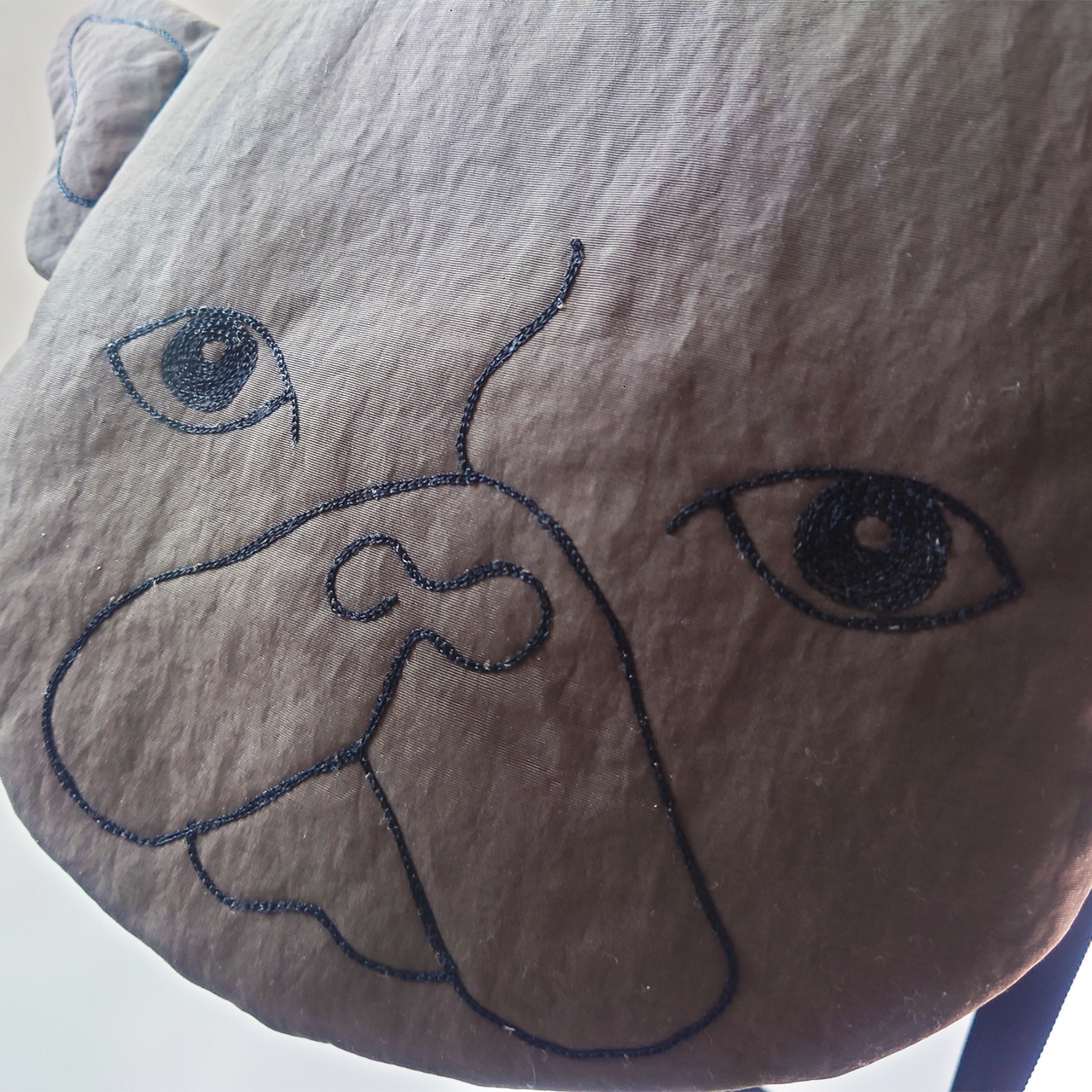 フレンチブルドッグのお顔がモチーフの、斜め掛けできるショルダーバッグです。