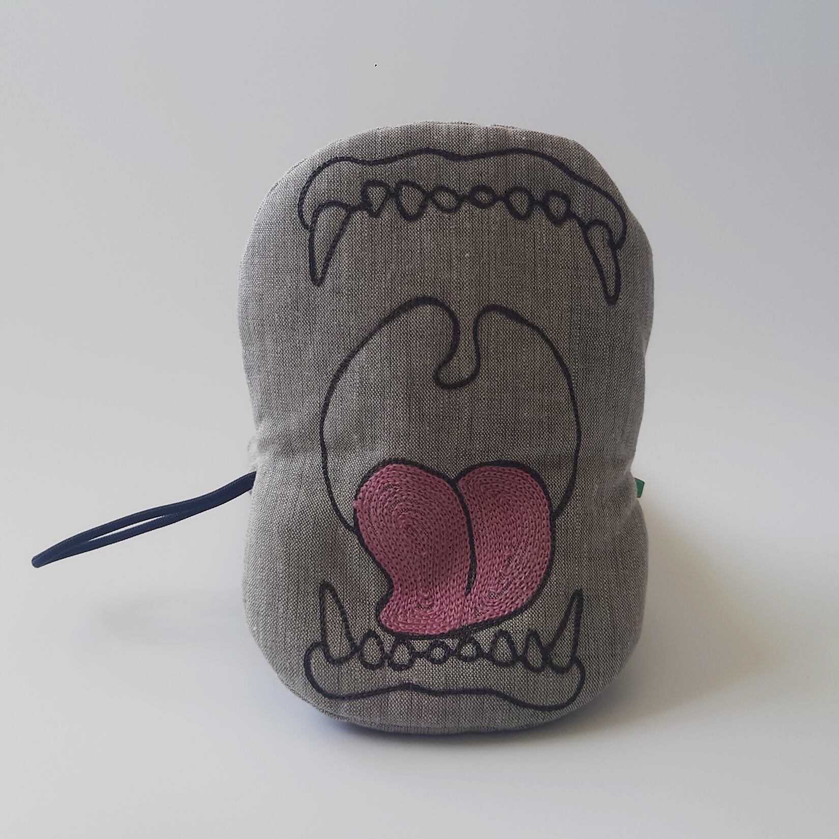 リネン地にはふっくらとしたキルト芯を合わせ、鍋をつかむ“お口”部分にはフェルトを2枚重ねているため、熱が伝わりにくくなっています。