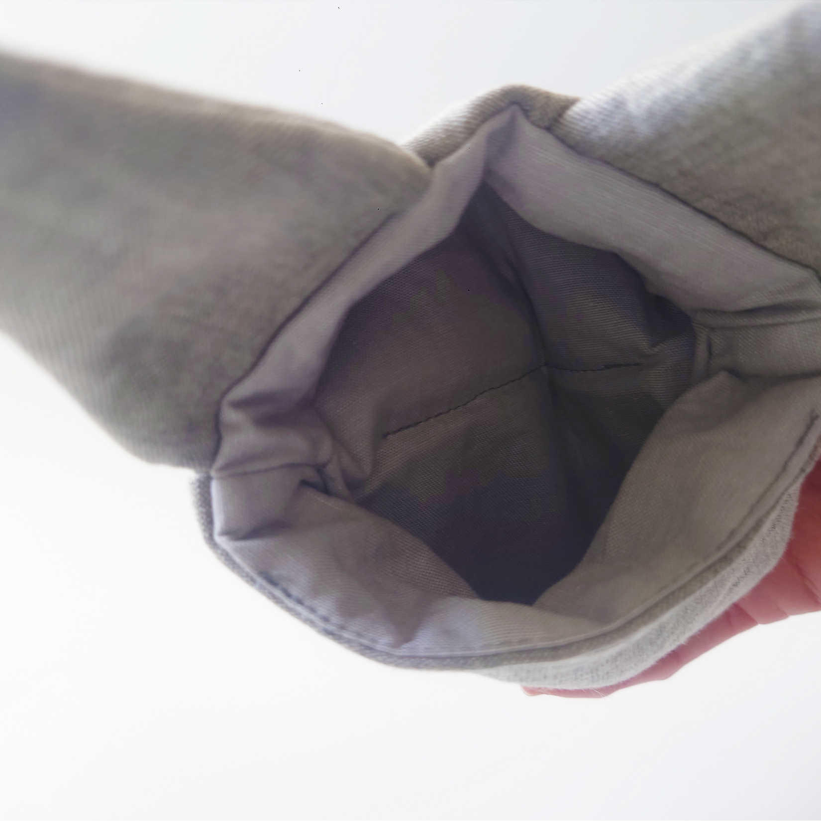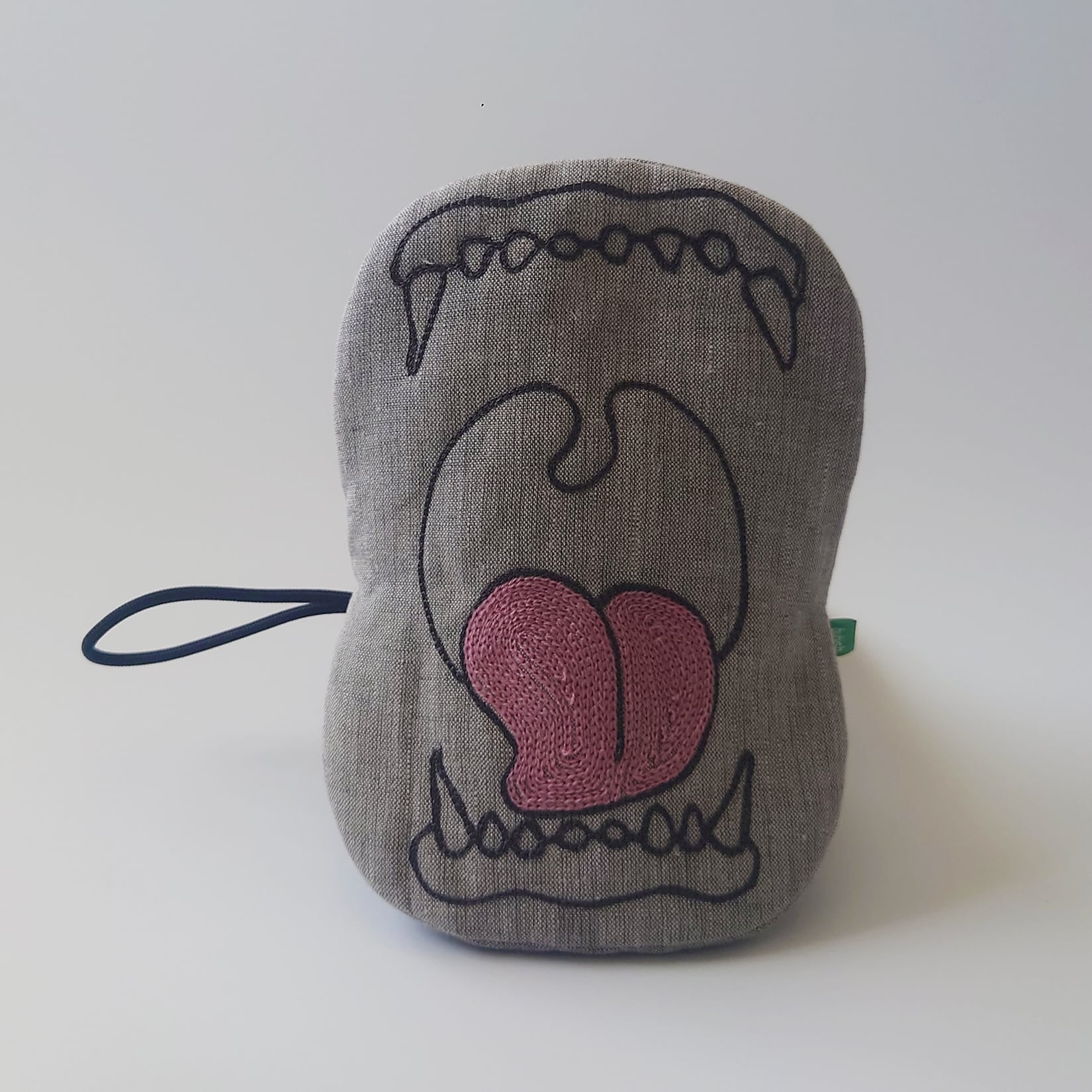 リネン地にはふっくらとしたキルト芯を合わせ、鍋をつかむ“お口”部分にはフェルトを2枚重ねているため、熱が伝わりにくくなっています。