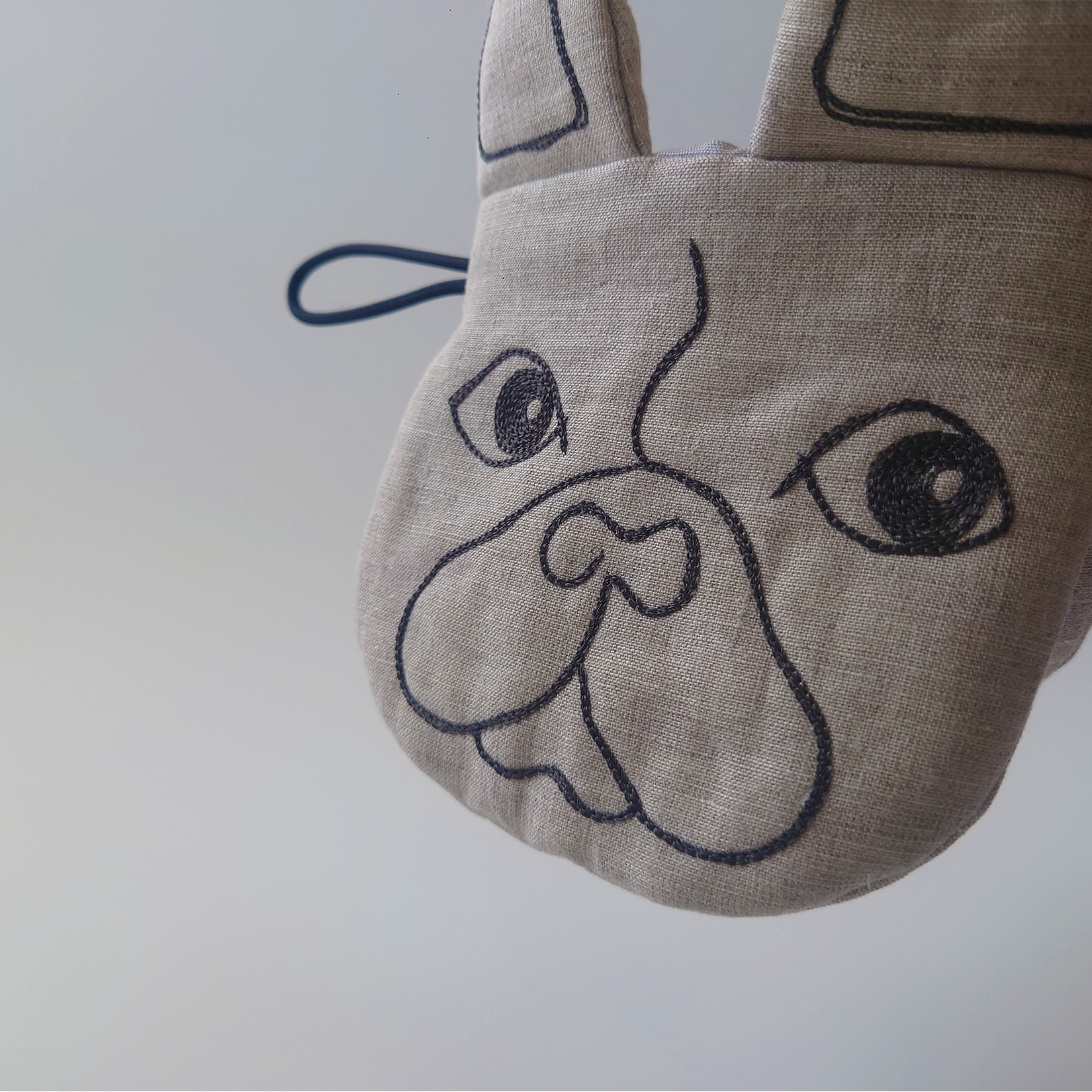 リネン地にはふっくらとしたキルト芯を合わせ、鍋をつかむ“お口”部分にはフェルトを2枚重ねているため、熱が伝わりにくくなっています。