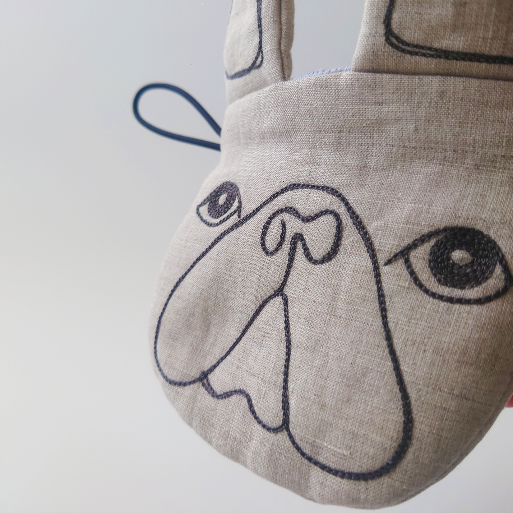 リネン地にはふっくらとしたキルト芯を合わせ、鍋をつかむ“お口”部分にはフェルトを2枚重ねているため、熱が伝わりにくくなっています。