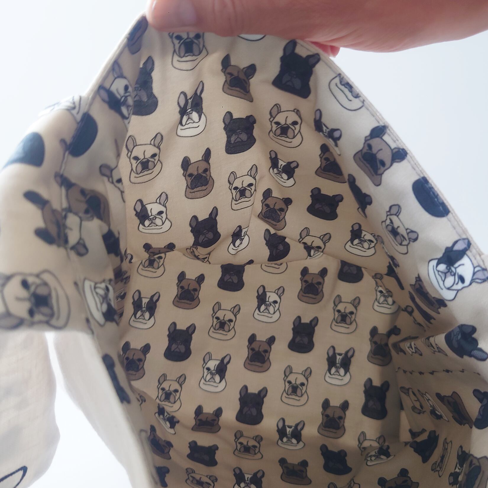 表地はリネン、裏地にはオリジナルプリントのシーチングを使って仕立てています。